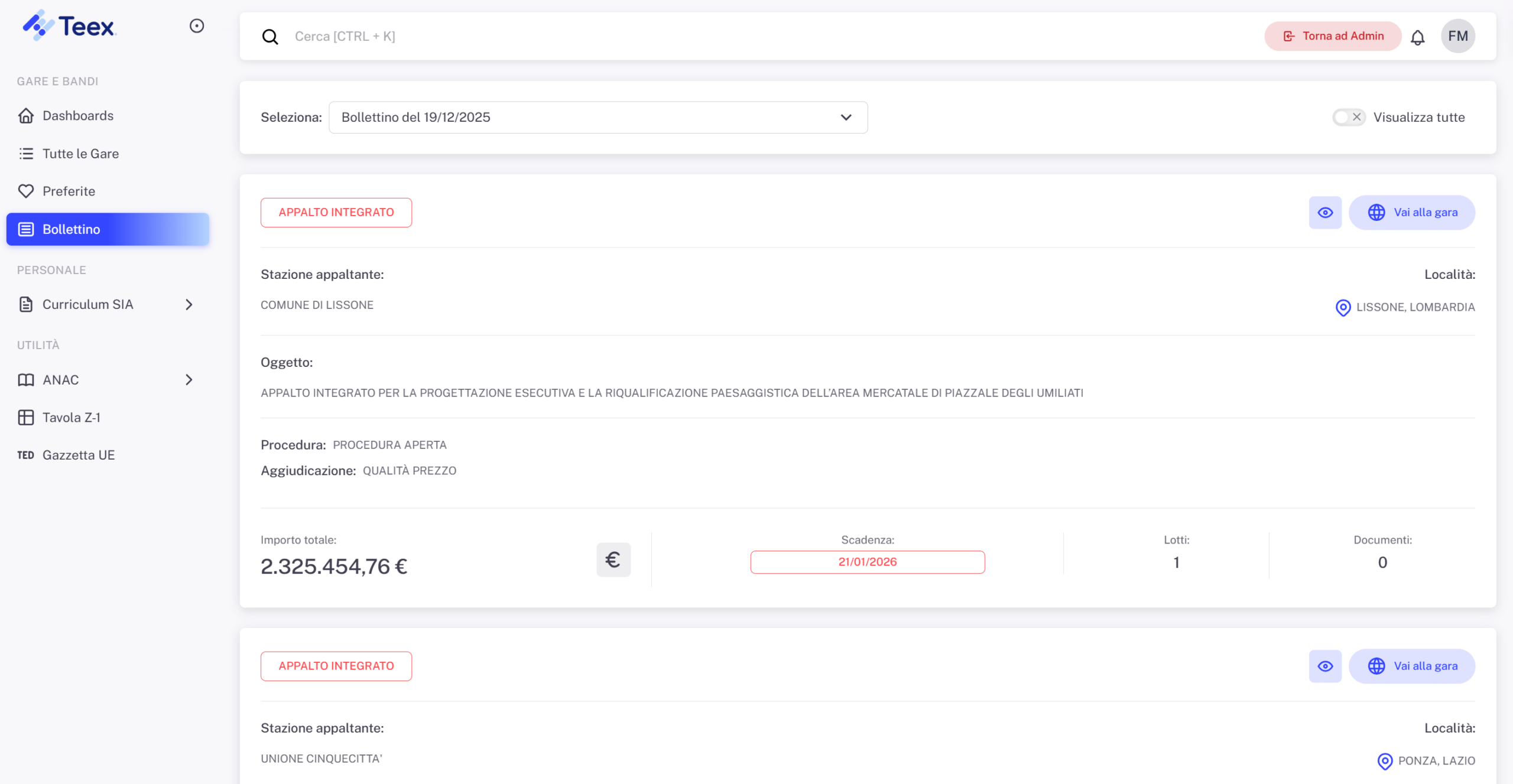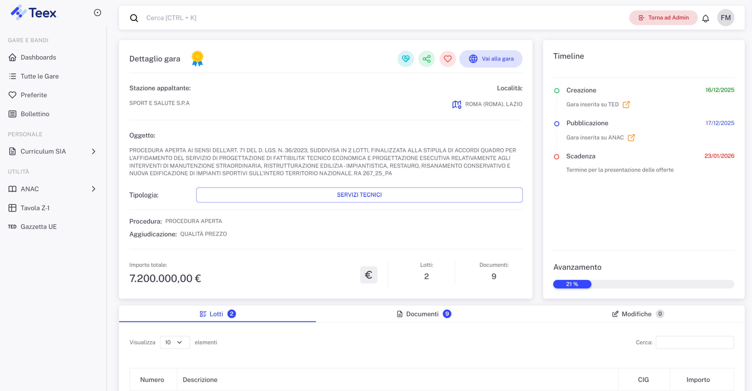 Consulta rapidamente tutte le informazioni della gara e scarica i documenti allegati.