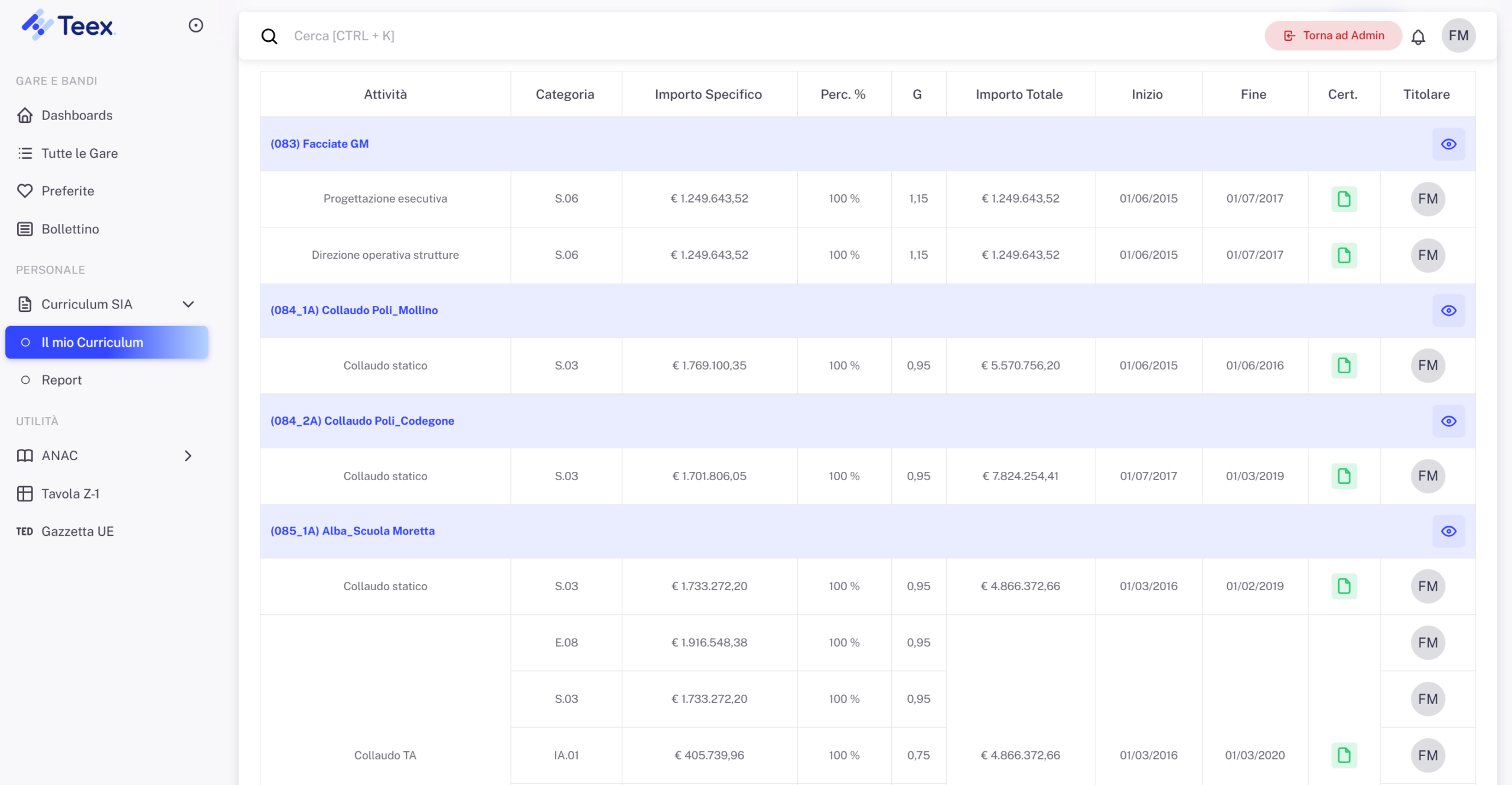 Tieni traccia dei lavori eseguiti per valutare in un lampo se possiedi i requisiti per partecipare a una gara.