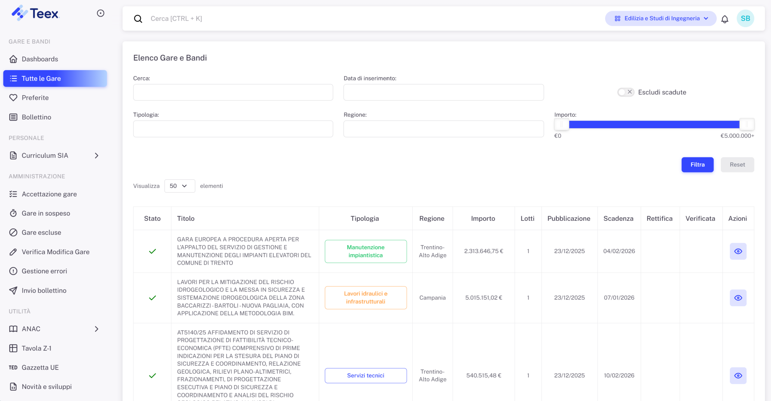 Il primo portale per la ricerca delle gare d’appalto realizzato esclusivamente per il mondo dell’edilizia, con tutte le funzionalità che ti servono.